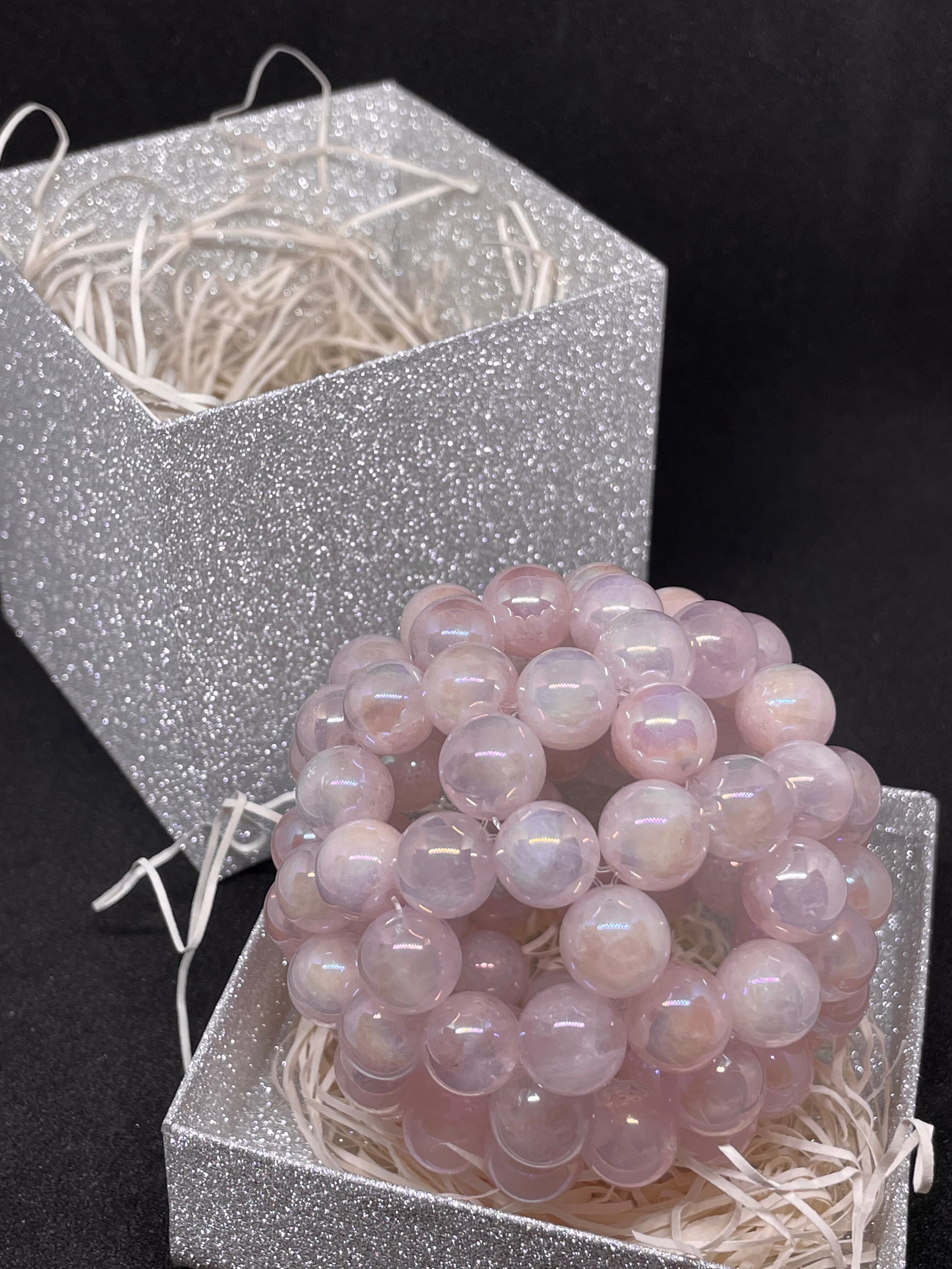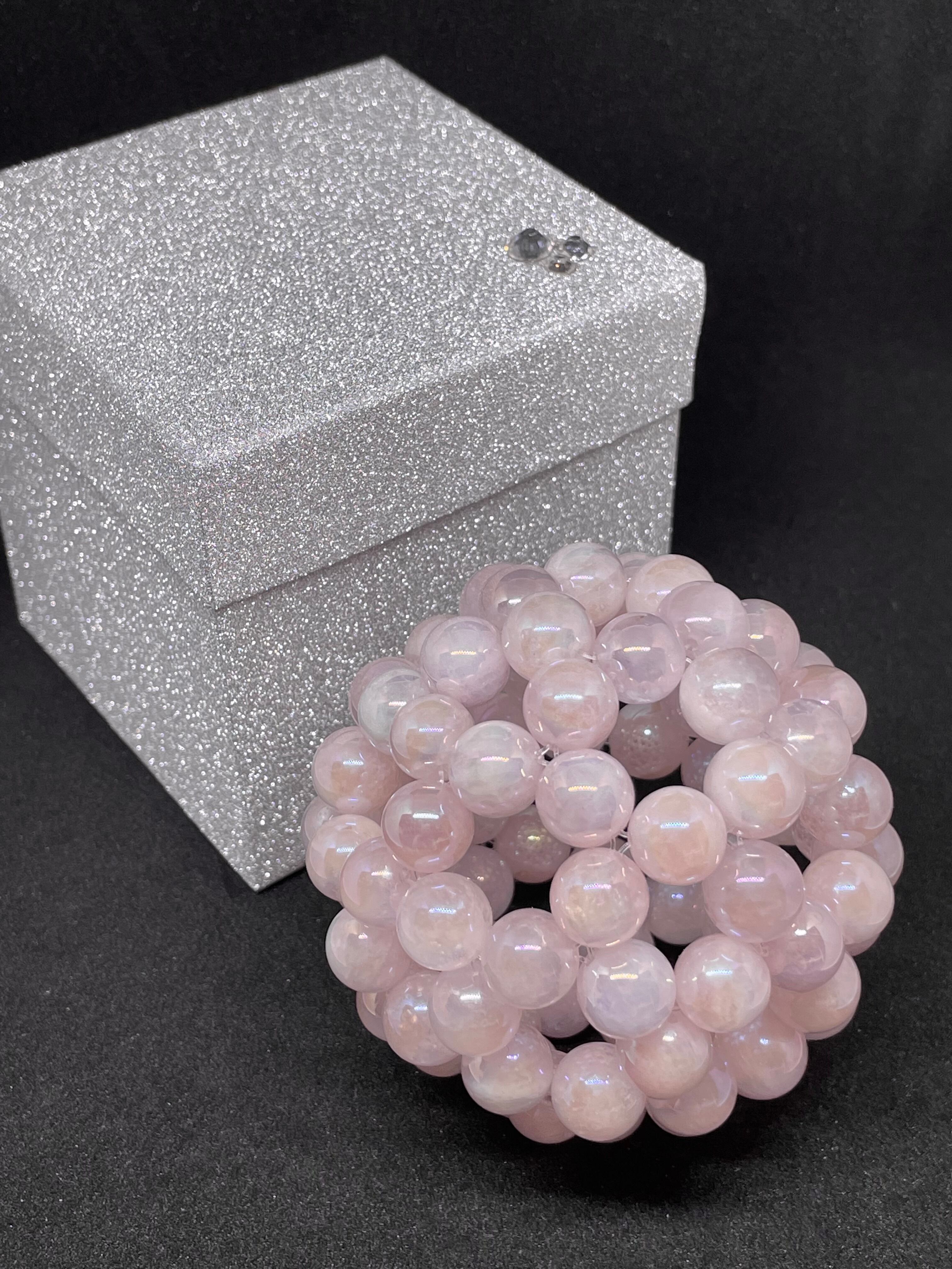 直径約6.2cm 10mmローズオーラクォーツ90粒使用