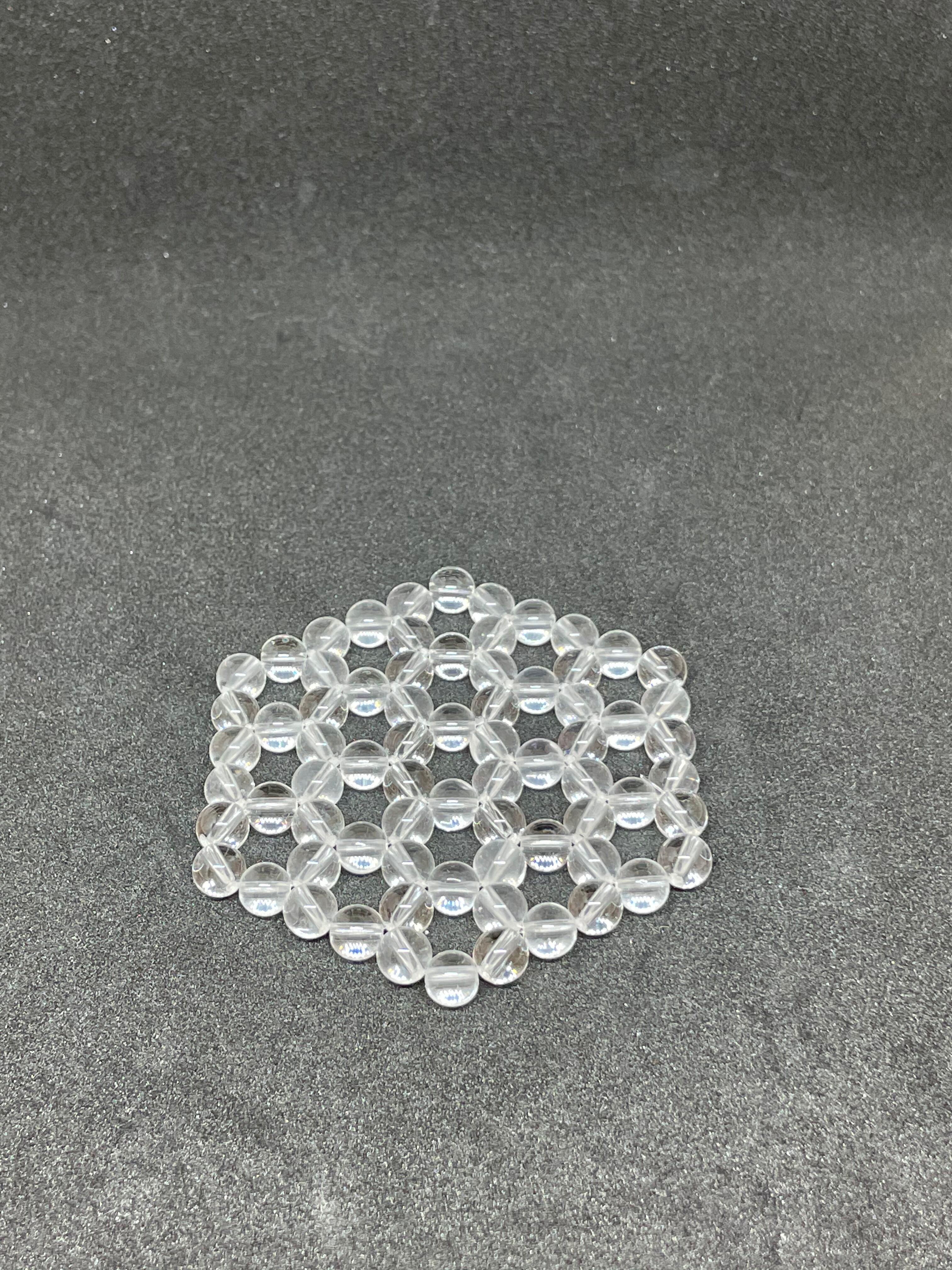 水晶は持つ人の潜在能力を引き出す力があります。そして六角形は水晶のパワーを最大限に引き出す形です。水晶で作る6角形の集合体である六芒星マットです。
