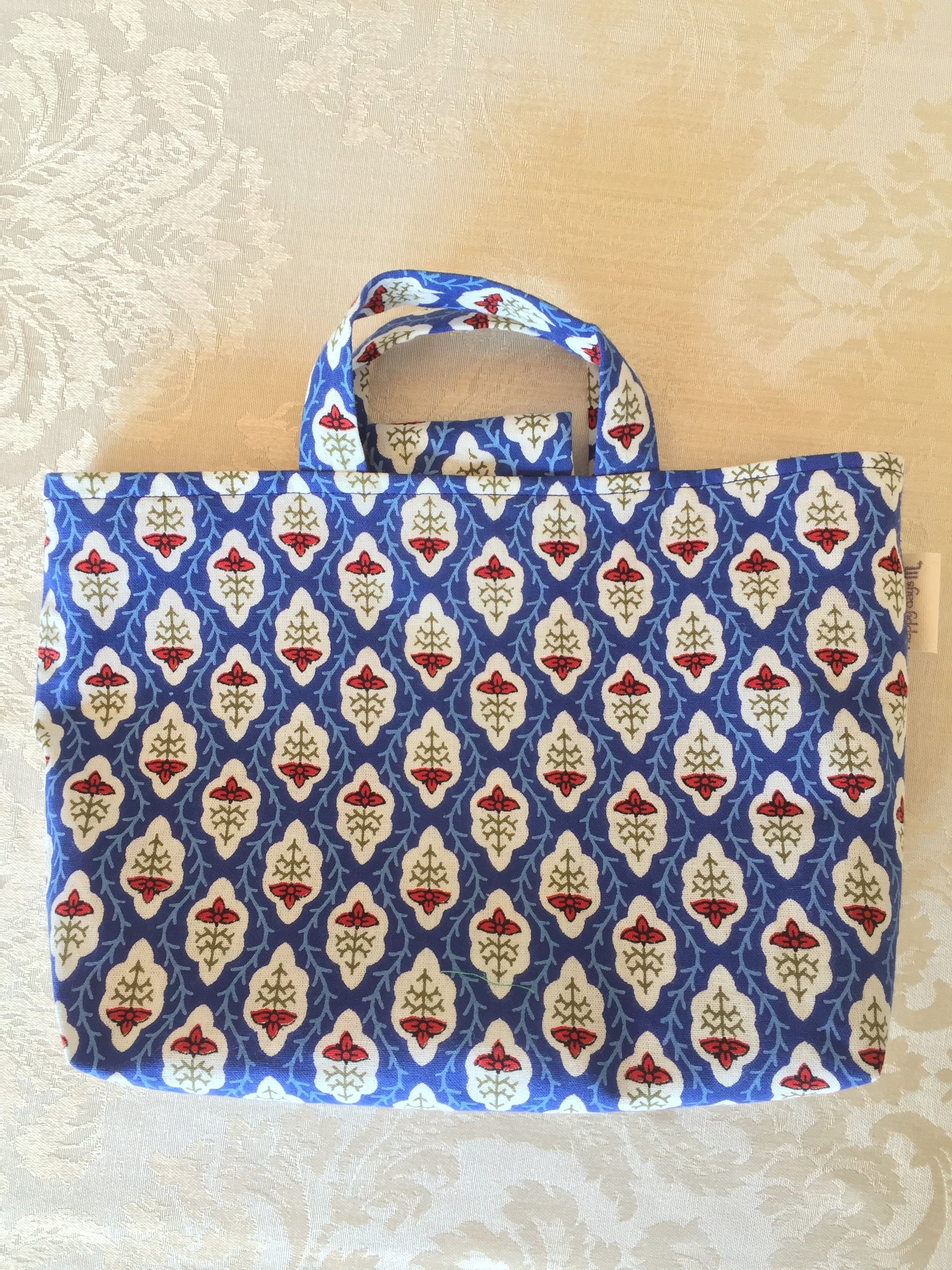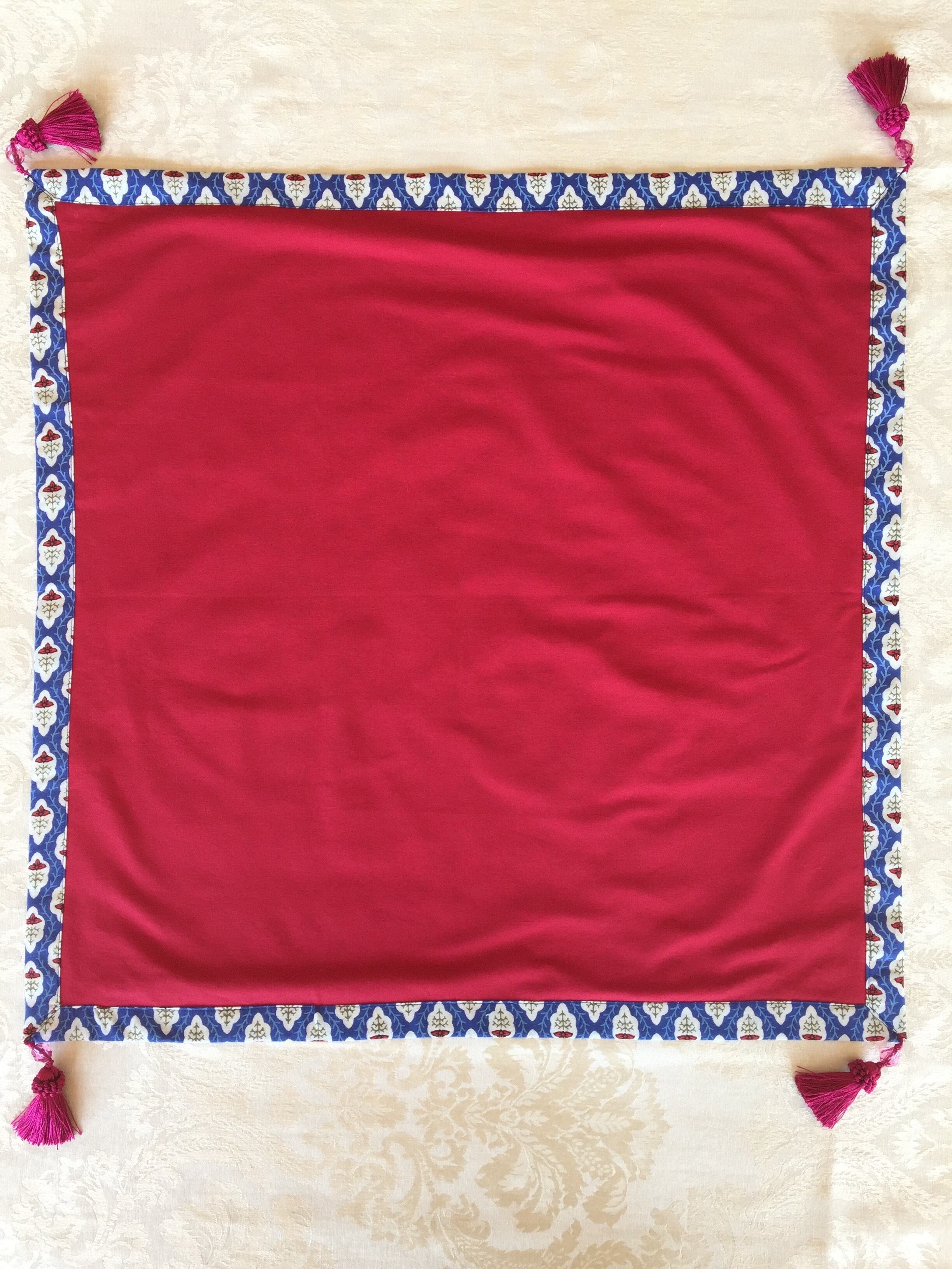 プロヴァンス風の生地に赤い布を合わせました。タロットクロスとバッグの2点セットです。